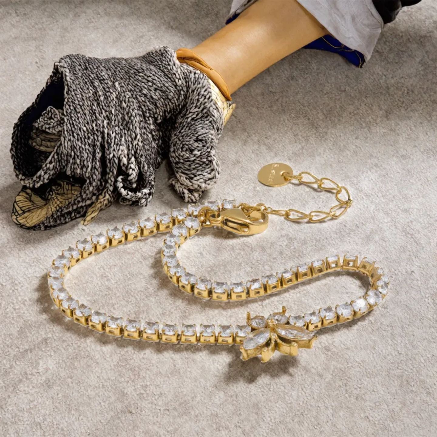 A sleek gold tennis bracelet accented with a delicate butterfly charm and precision-set zircon stones, designed to shimmer beautifully with every movement.