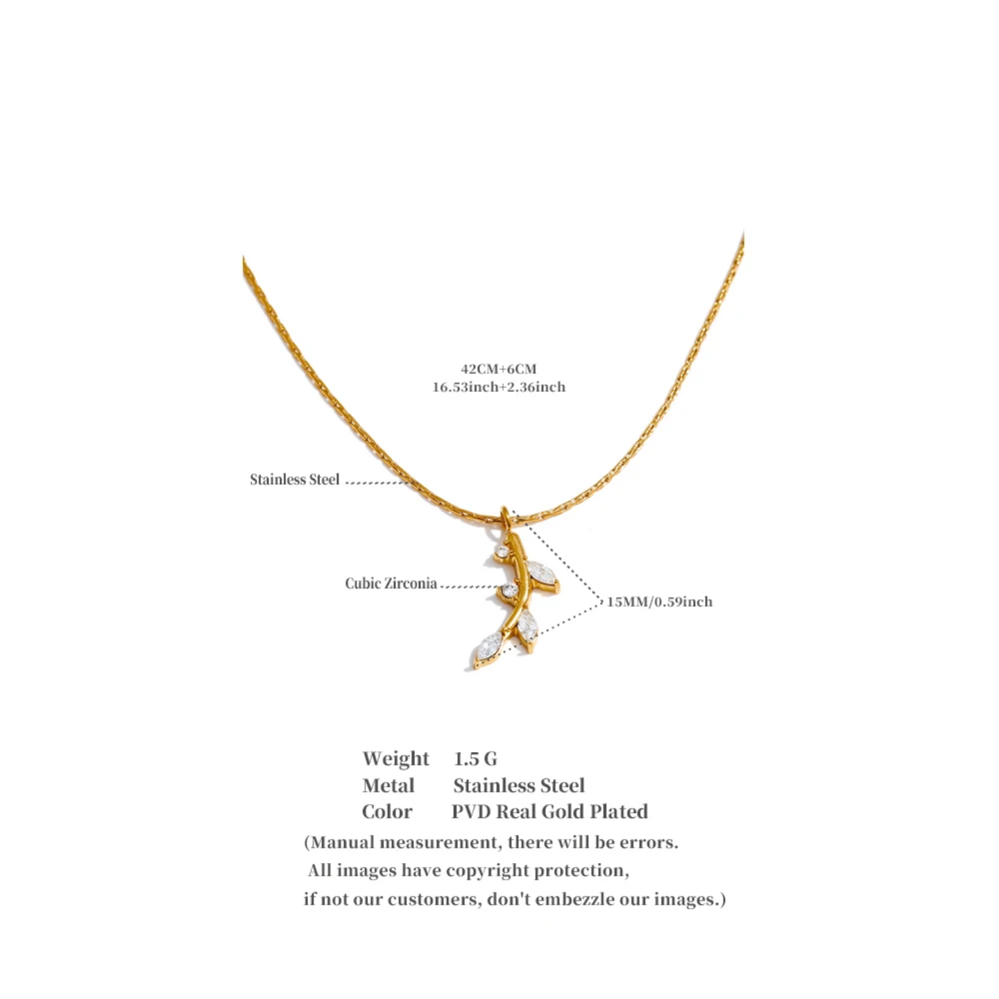 Waterproof & Tarnish-Free: Designed to withstand daily wear, this necklace resists fading, discoloration, and green marks, maintaining its beauty over time.