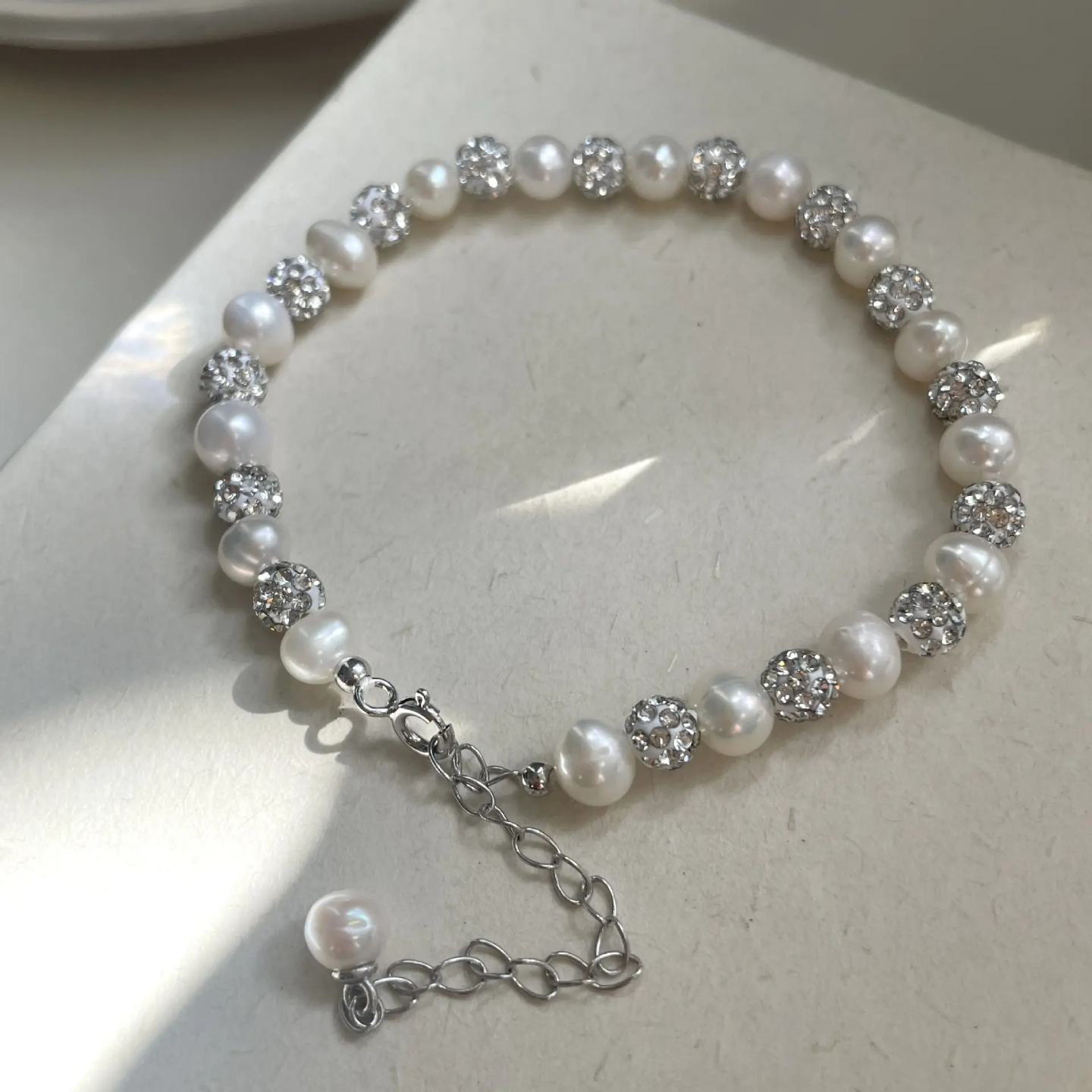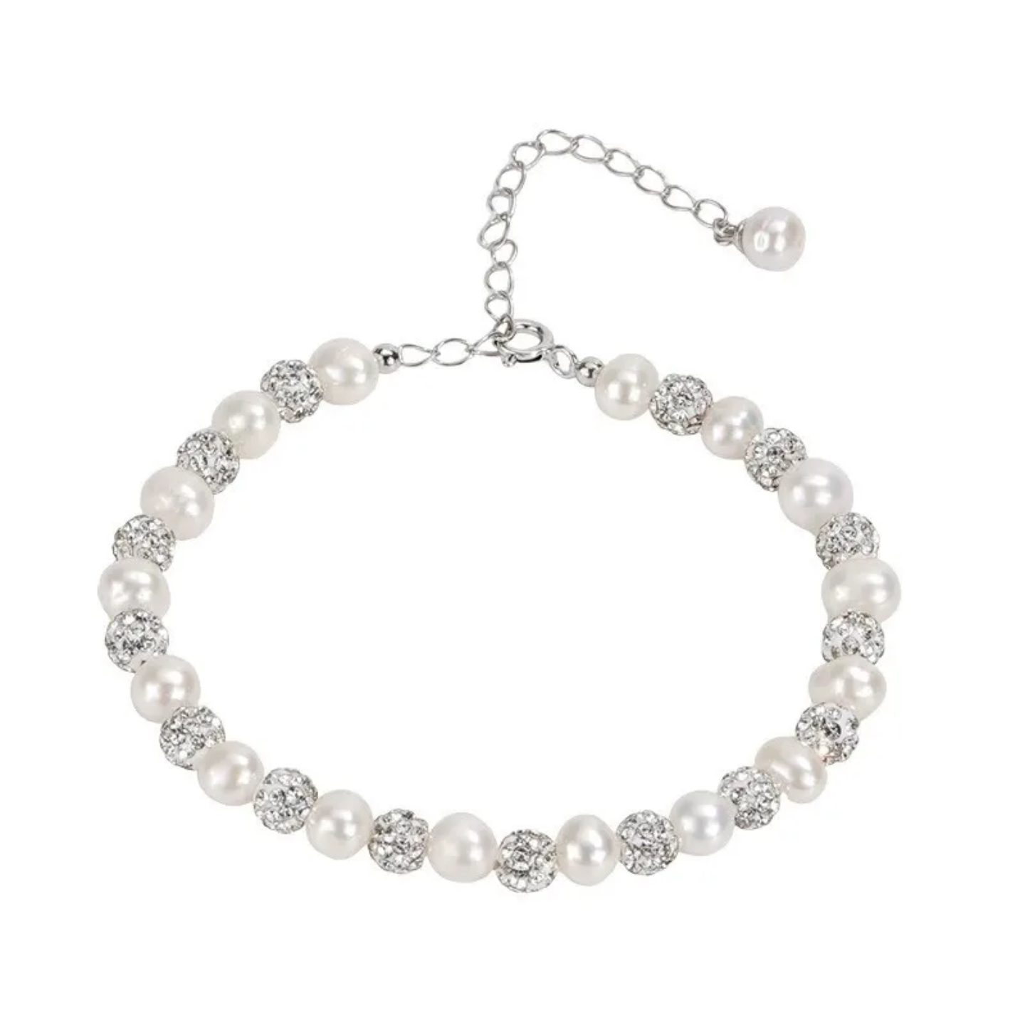 A graceful fusion of natural pearls and a delicate mother of pearl flower, designed to add a soft, elegant charm to your wrist.